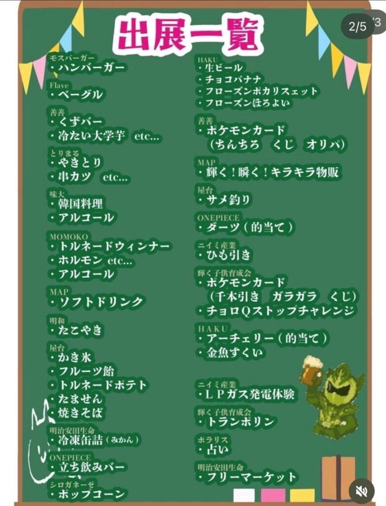 食べ物系も焼き鳥や焼きそば、たこやき、かき氷、モスバーガー等々色々ありました。