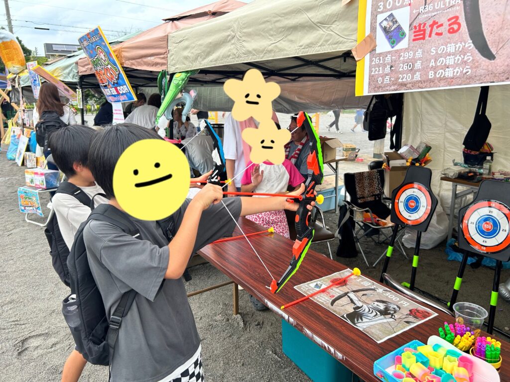 ジュースを買うと、両手いっぱいにクッピーラムネをおまけしてくれたり、懐かしいサメ釣りや千本引き、ダーツやアーチェリー、金魚すくい等々、